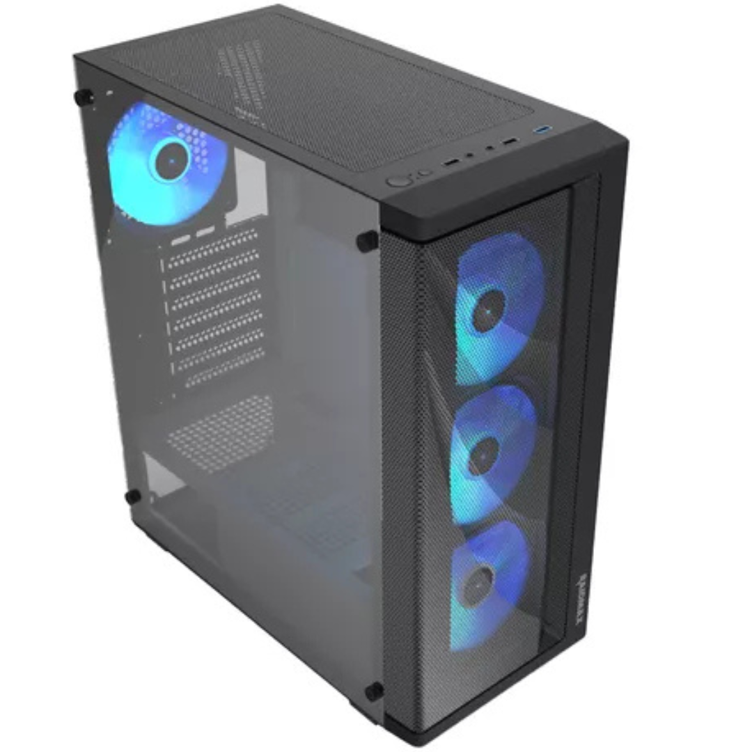 - Vidrio Templado: Panel lateral transparente para mostrar tu hardware con estilo.